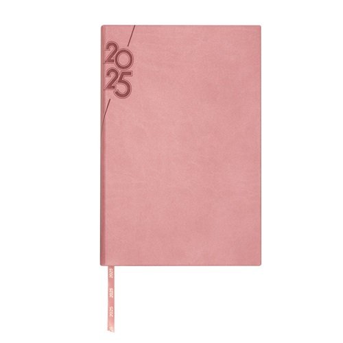 Agenda diaria con 186 hojas. Contiene datos personales, calendarios 2024-2025-2026, planeador 2025, seguimiento de nuevos hábitos, organizador de tareas, planeador de proyecto y días festivos. Incluye caja individual del mismo color a la agenda.